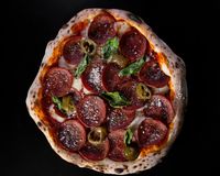سس پومودرو و پپرونی و هالوپینو و پنیر پیتزا و سیزنینگ پیتزا و پنیر پارمسان و روغن اروماتیک
