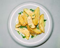 سيب زميني سرخ شده همراه با سس كچاپ و سس سير