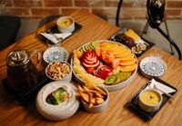 بشقاب میوه ، آجیل چهار مغز ، دیپ مزه سرد به همراه نان مخصوص